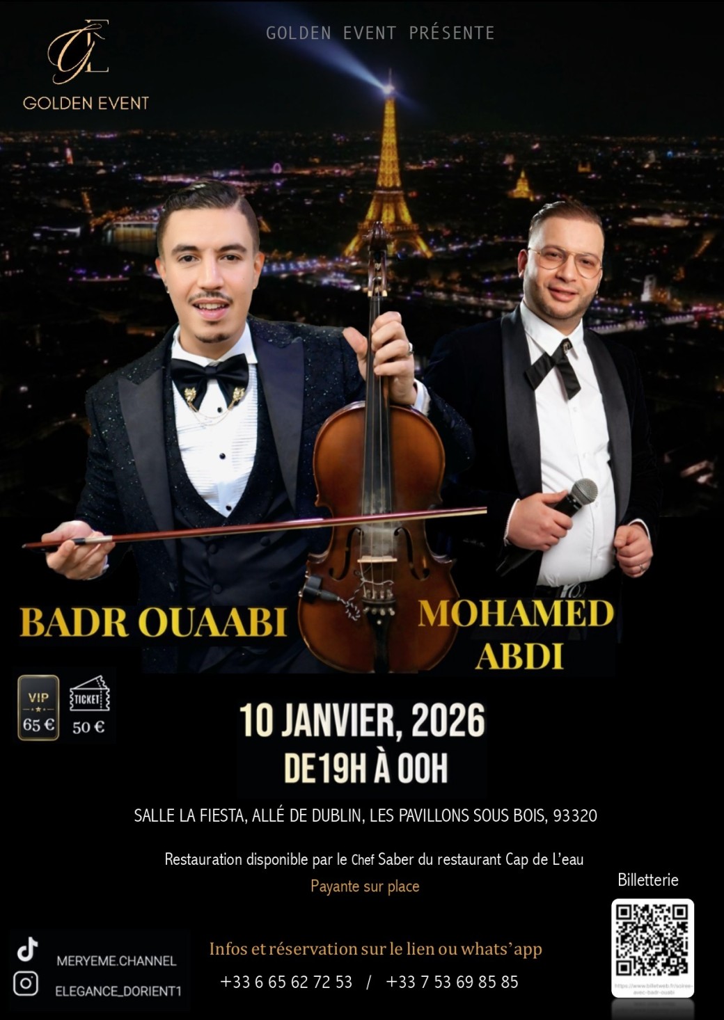 Vivez une soirée exceptionnelle placée sous le signe de la musique marocaine authentique avec la présence du chanteur chaabi et amazigh Badr Ouaabi. Artiste au style unique, il marie avec finesse les sonorités chaabi traditionnelles et la richesse mélodique de l’amazigh, créant une ambiance chaleureuse, vibrante et profondément enracinée dans la culture marocaine.