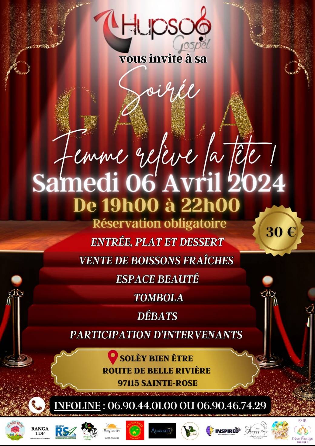 L'association HUPSOO GOSPEL t'invite a sa première soirée GALA qui aura lieu le samedi 06 Avril 2024 à l'espace "SOLEY BIEN ETRE" route de belle rivière 97115 SAINTE-ROSE.