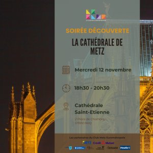 Le Club Metz Eurométropole a le plaisir de vous convier à sa soirée découverte de la Cathédrale Saint-Etienne de Metz, le mercredi 12 novembre de 18h30 à 20h30.