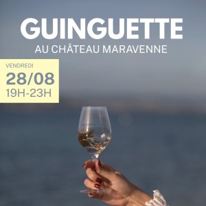Venez profiter d’une soirée guinguette festive dans le cadre exceptionnel du domaine viticole Château Maravenne, avec une terrasse offrant une superbe vue mer.