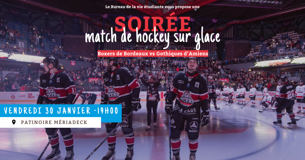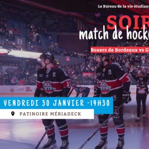 2026-01-30 18:45:002026-01-30 22:30:00Europe/ParisSoirée Hockey - Match des Boxers de BordeauxReservations on : https://www.billetweb.fr/soiree-hockey-match-des-boxers-de-bordeaux
