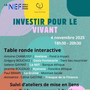 Et si votre argent pouvait contribuer à un monde plus juste, plus respectueux, plus humain ? Lors de cette soirée interactive et accessible à tous, vous découvrirez comment faire rimer épargne et engagement. Éclairage sur les coulisses de la finance, rencontres avec des acteurs de terrain (monnaies locales, projets solidaires, plateformes participatives…), échanges en petits groupes… Une soirée pour comprendre, rencontrer, partager, et repartir avec des idées concrètes pour agir à votre échelle.
