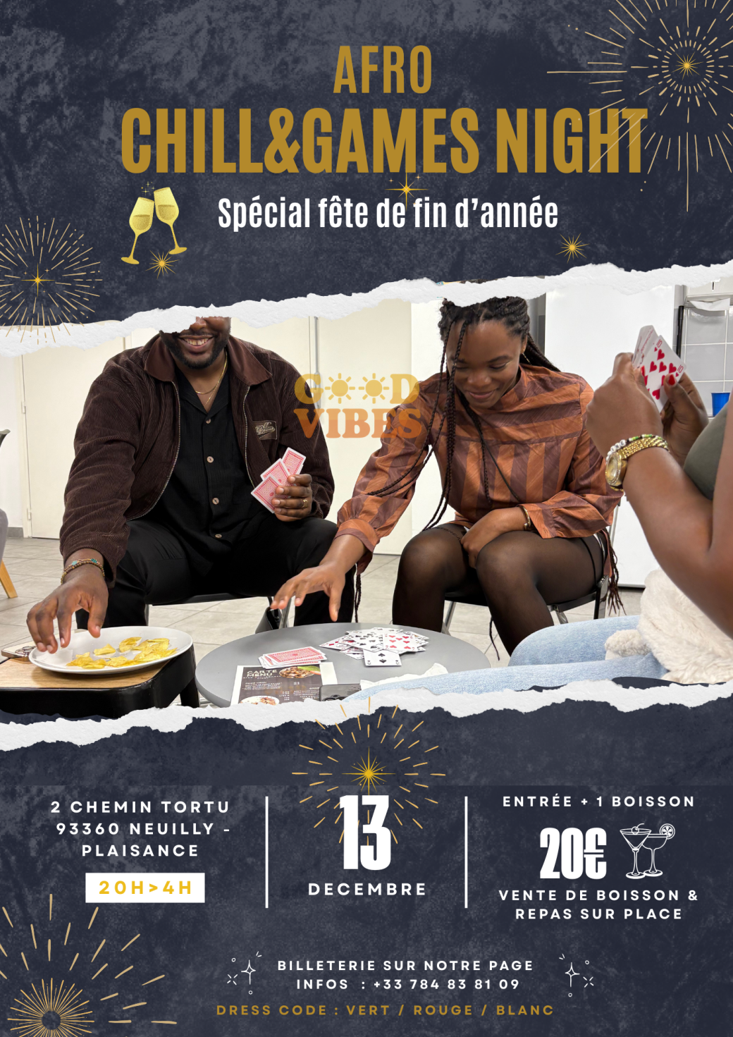 Reservations on : https://www.billetweb.fr/soiree-jeux-afro-speciale-fete-de-fin-d-annee --