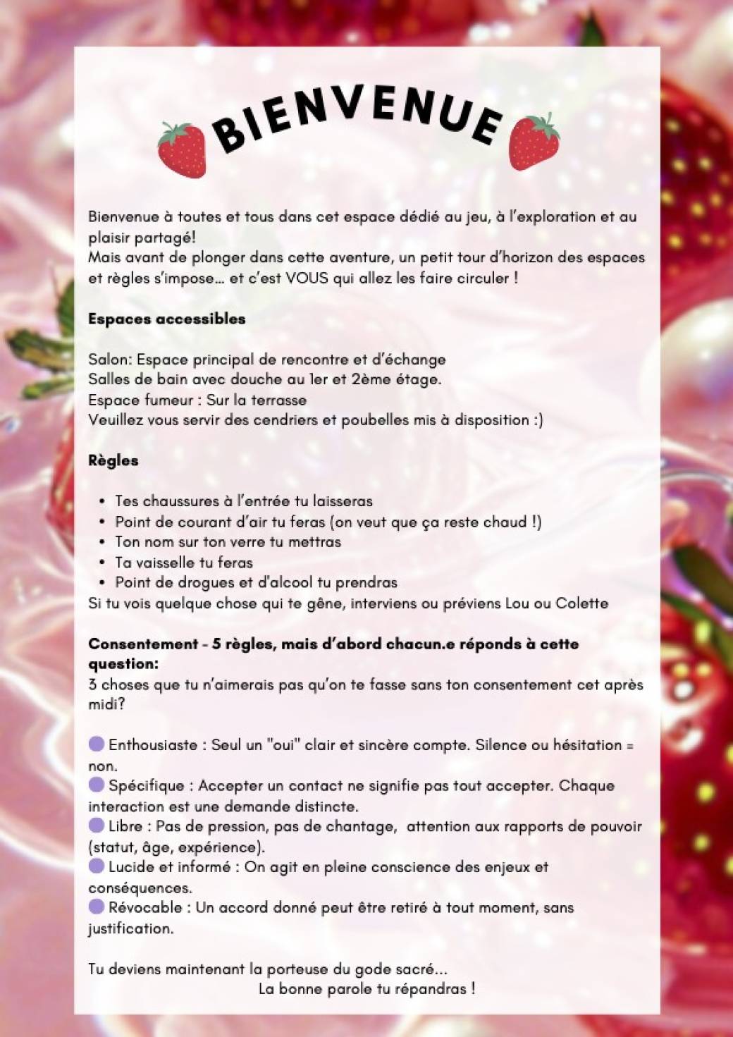 La sexualité est autorisée. Seront à notre dispo une pièce principale et plusieurs chambres.