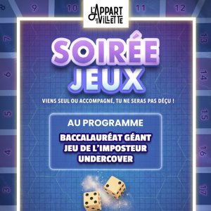 Le vendredi 10 avril à 20h, viens passer une soirée placée sous le signe du jeu, du rire et de la bonne humeur à l’Appart de la Villette.