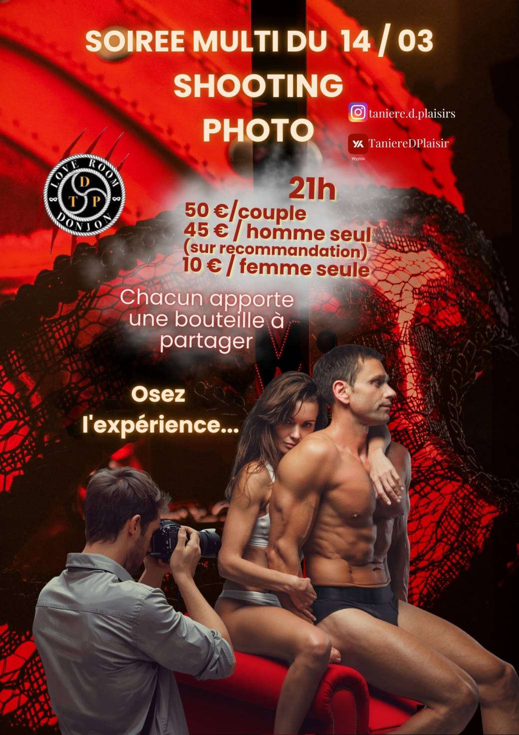 En option, vous pouvez, exceptionnellement pour cette soirée, réserver un créneau d'environ 20 min pour un shooting photo avec un vrai professionnel : Kashaprod.