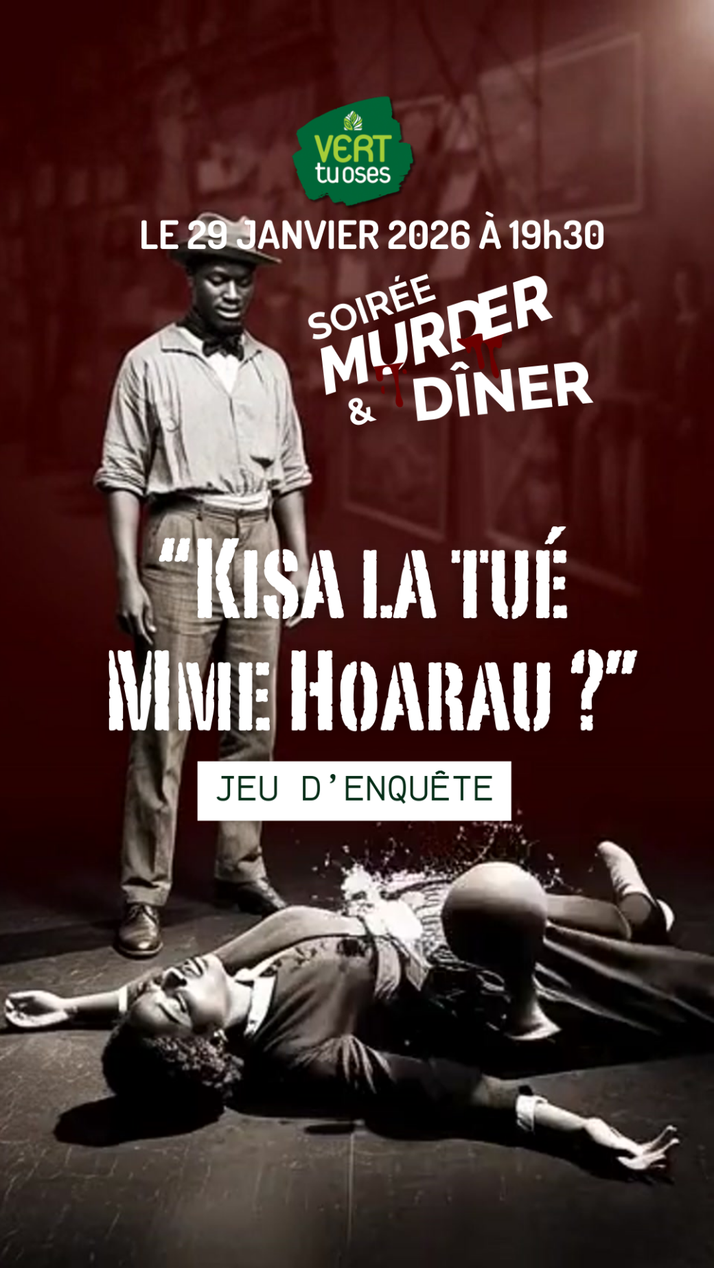 Pour cette 7ème édition, réservez dès à présent vos places pour ce jeu d’enquête et voyage dans les années 1900 ! Jeux et enquêtes 974 vous guidera pour démêler l'affaire "Kisa la tué Mme Hoarau ?"