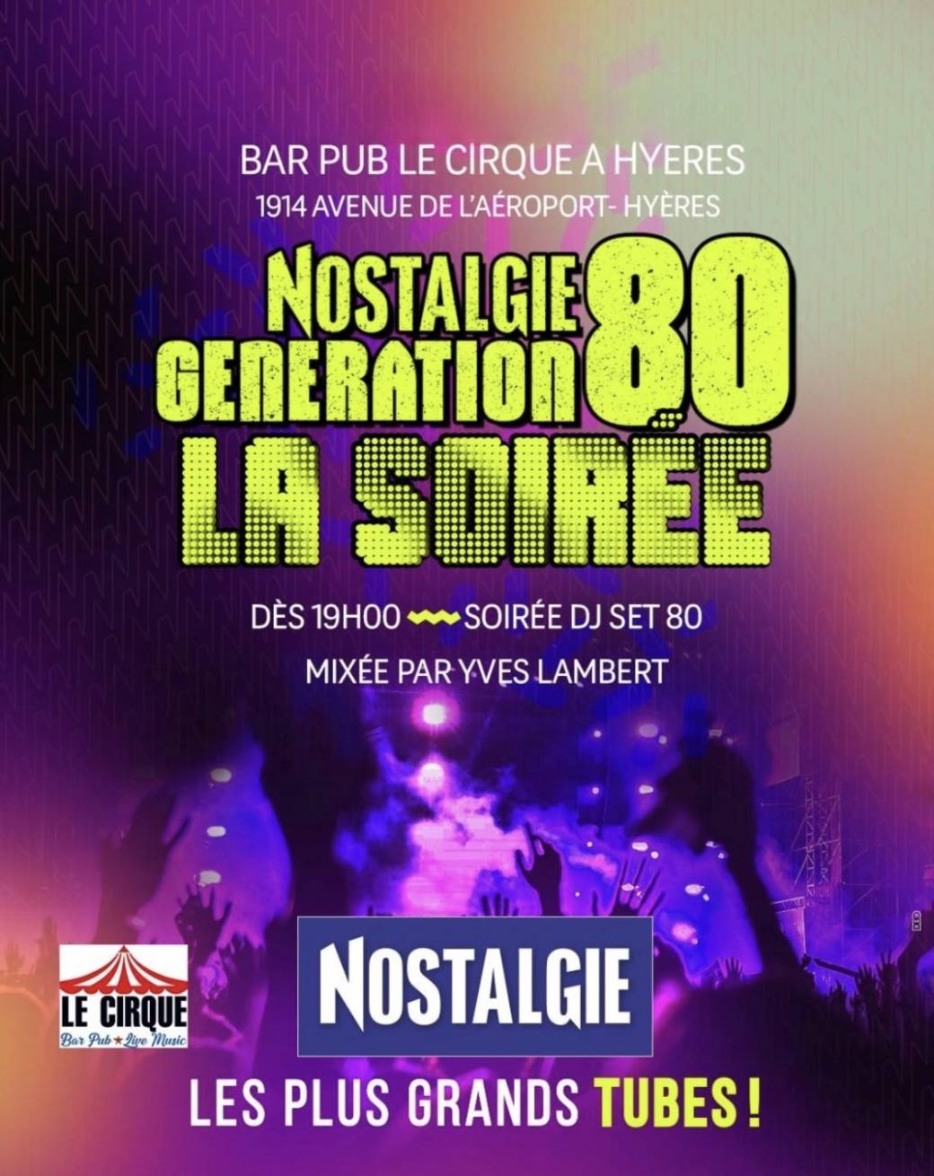 Ne manquez pas cette occasion de revivre l'époque dorée de la musique et de créer de nouveaux souvenirs. C'est LA SOIRÉE "NOSTALGIE GENERATION 80" !
