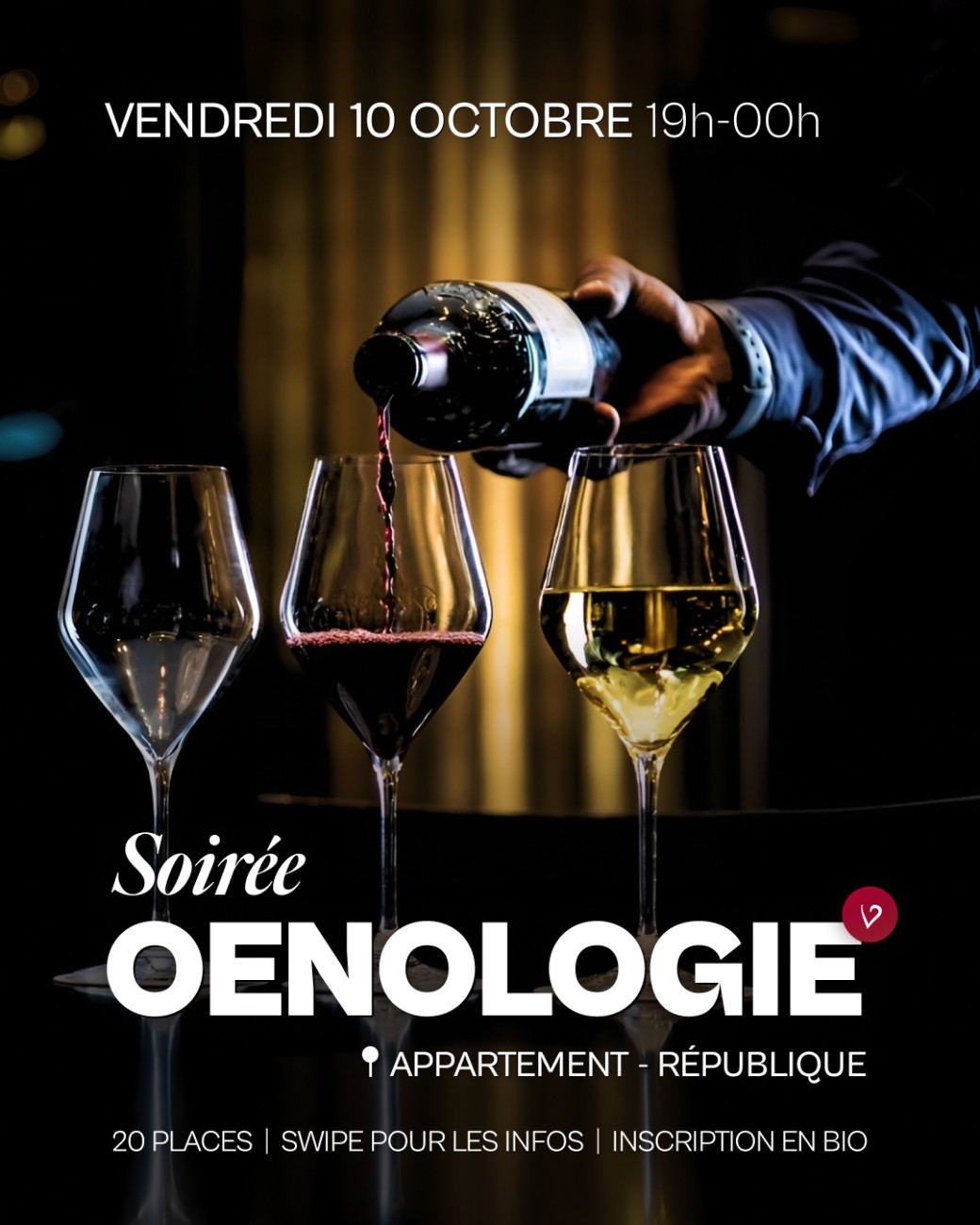 2025-10-10 19:00:002025-10-10 23:55:00Europe/ParisSOIRÉE OENOLOGIEReservations on : https://www.billetweb.fr/soiree-oenologie6
