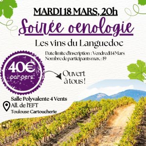 2026-03-24 20:00:002026-03-24 22:30:00Europe/ParisSoirée œnologique: histoire et identité des vins du LanguedocReservations on : https://www.billetweb.fr/soiree-oenologique-histoire-et-identite-des-vins-du-languedoc1