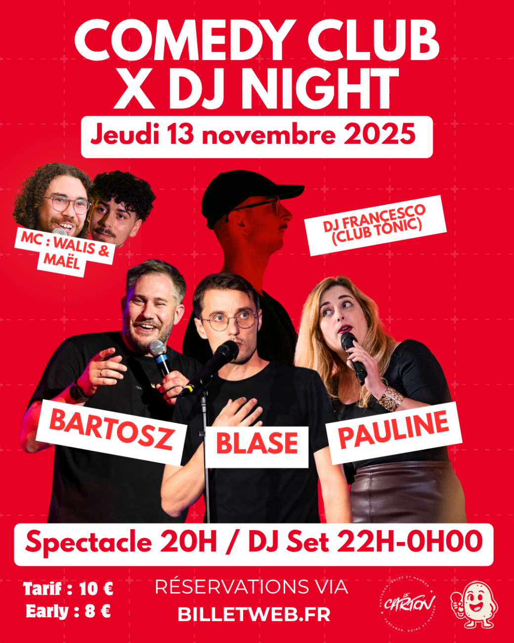 En première partie, place au stand-up : trois humoristes se succèdent sur scène pour te balancer leurs meilleurs quinze minutes. Des rires, de l’impro, des punchlines… bref, une heure d’énergie pure et d’authenticité.