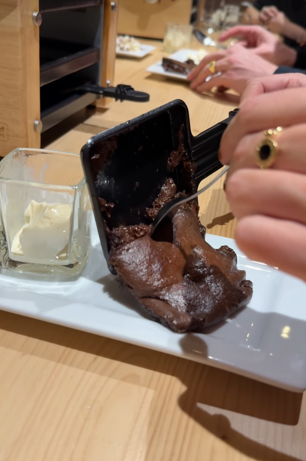 → Un moelleux au chocolat à cuire soi-même dans les caquelons à raclette.