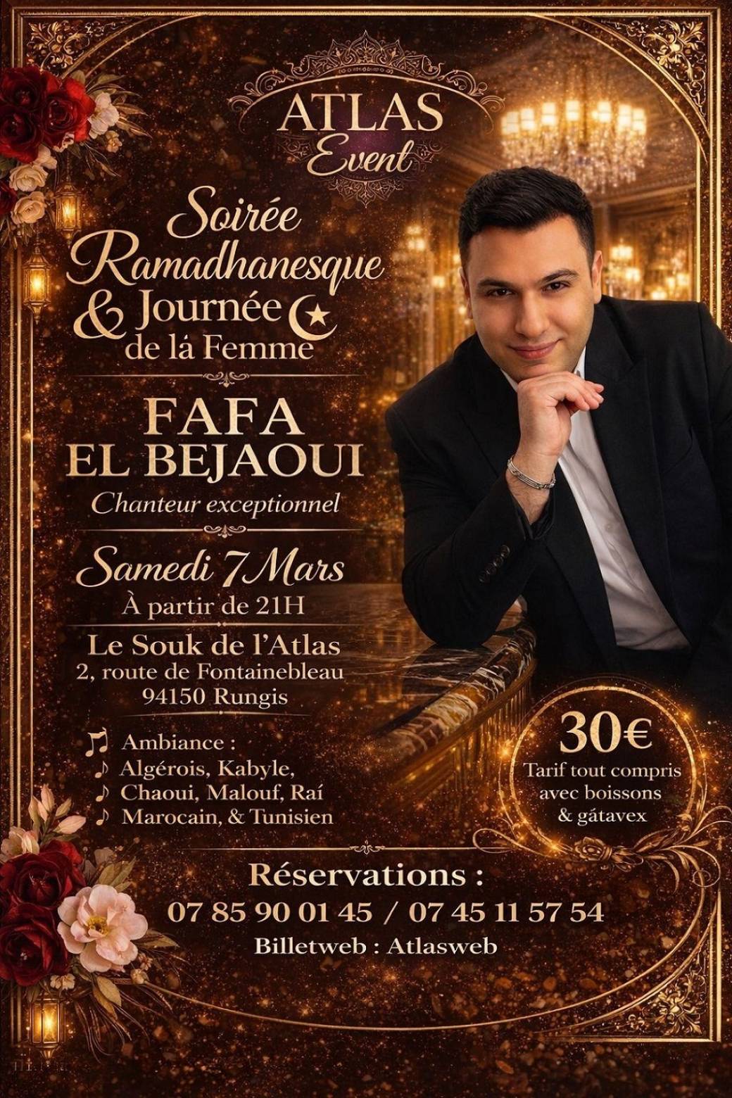 Reservations on : https://www.billetweb.fr/soiree-ramadanesque-journee-de-la-femme --