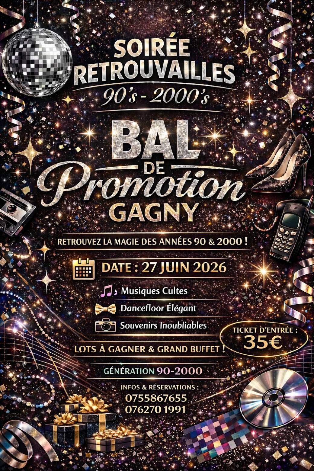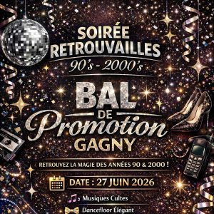 Gagny Reunion 2026 est une soirée de retrouvailles réunissant les personnes ayant effectué leur primaire, collège ou lycée à Gagny, toutes générations confondues, avec un clin d’œil particulier aux générations early 90’s – années 2000.