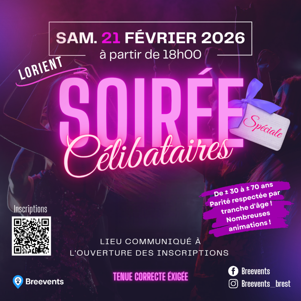 Rejoignez-nous ! Breevents organise à Lorient une soirée spécialement pensée pour les célibataires, rythmée par de la musique, des animations et des échanges chaleureux.