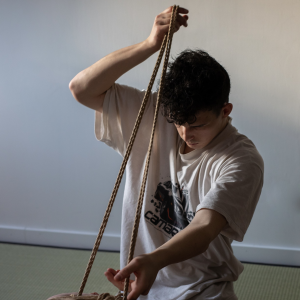 Mes cours sont groupés en plusieurs modules, "SOL" signifie qu le module ne se déroule qu'au sol (sans suspension). Le module "SOL 1" se nomme "l'essence et la beauté du shibari", il vise à vous offrir l'opportunité de découvrir les différentes façons de pratiquer le shibari sans se perdre dans des attaches trop techniques. Les harnais plus techniques commenceront à être appris et utilisé à partir du module "suspension partielle 1".