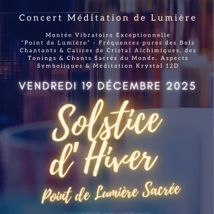 Le solstice étant un“Point de Lumière Sacrée” où l'énergie Christique & ses Codes de Lumières se déversent sur l'humanité. Il est donc important de nous réunir et d'accueillir en Soi la paix profonde et l'Amour afin de passer un hiver serein...