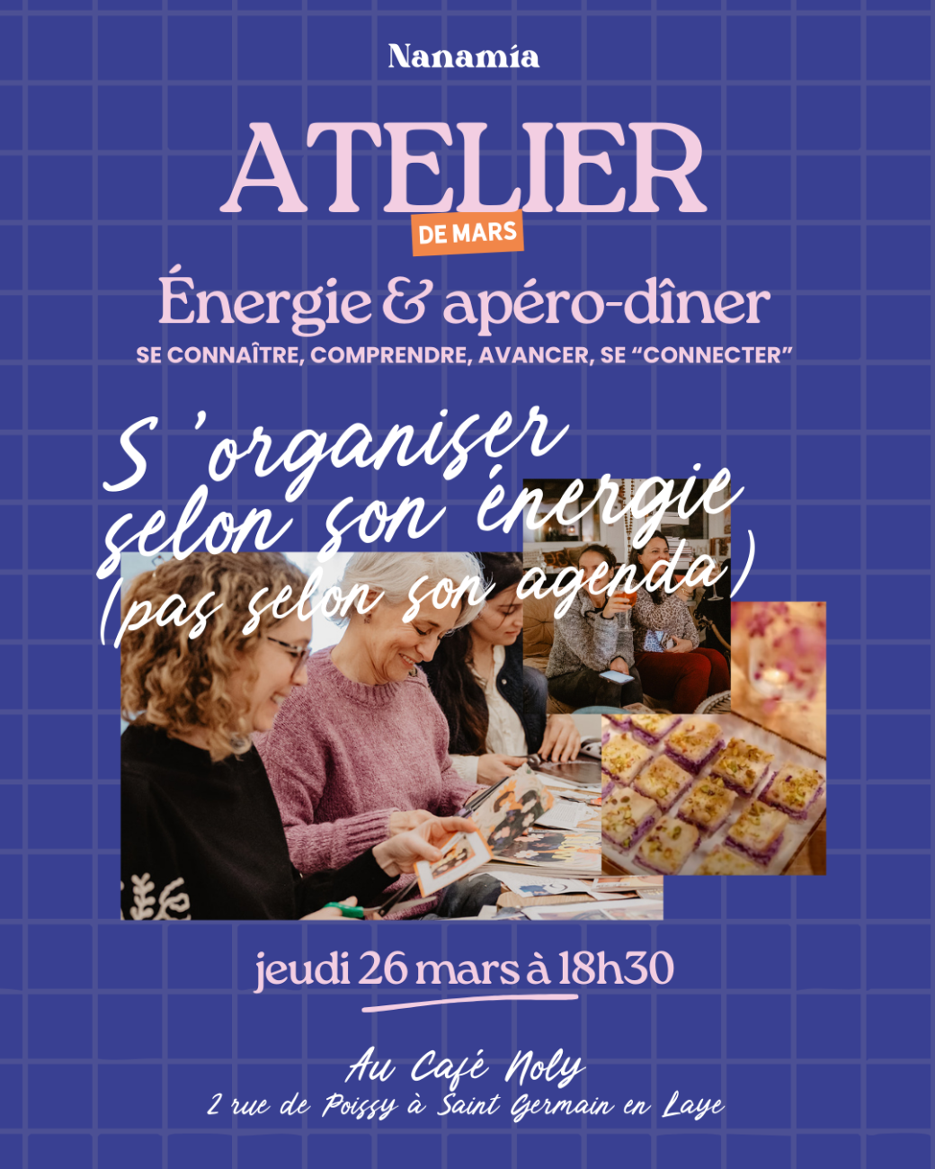 Un moment rien que pour toi le temps d'un atelier concret & un apéro-dînatoire en petit comité pour que tu comprennes comment tu fonctionnes. Un moment entre femmes pour apprendre à connaître ton énergie, identifier ton rythme naturel et construire une organisation qui te ressemble.