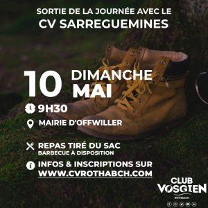Dimanche 10 mai, le Club Vosgien de Rothbach propose une sortie d’une journée autour de Rothbach avec les amis du Club Vosgien de Sarreguemines. Rendez-vous à 9h30 au parking de la mairie d’Offwiller, pour une randonnée de 11 km environ le matin et 5,5 km l’après-midi. Pour le repas de midi (vers 12h30), un barbecue sera à disposition à l’abri du Steinkoepfel pour les grillades que chacun aura ramené.