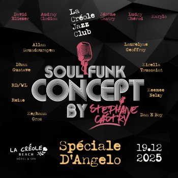 2025-12-19 20:30:00 2025-12-19 23:00:00 America/Guadeloupe Soul Funk « Spéciale D’Angelo » Reservations on : https://www.billetweb.fr/soul-funk-speciale-d-angelo -- Concept autour des tubes de la Soul et de la Funk music. Soirée spéciale D’Angelo.  Tarif prévente : 10€ sur les 100 premières places. Tarif hors prévente : 15€. Stéphane Castry / basse, direction musicale Jérôme Castry / batterie Audray Clodion / claviers Ludgy Chérod / guitare David Eliezer/ sax Reine / choeurs Marylo / choeurs   Avec les voix de :  Meghann Gros Dhan gustave RD/WL Reine Meemee Nelzy Allan Soudourayen Dan E boy Laurelyne Geoffroy Mirella Toussaint   La Creole Beach Hotel & Spa, Gosier, Guadeloupe La Créole Beach Hotel & spa