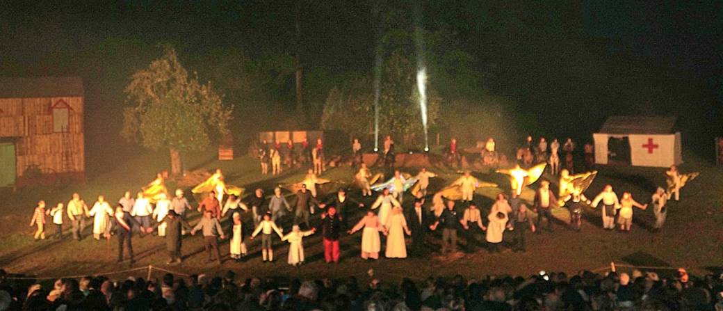 Après avoir suivi le récit d'un paysan parti à la guerre, nous suivrons cette année l'évocation des souvenirs de la grande guerre d'un grand-père à son petit-fils. Nouveau scénario, nouveaux tableaux mais mêmes émotions, effets spéciaux et feu d'artifice final !