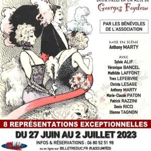 Nous ouvrons exceptionnellement les portes de notre théâtre dans le cadre de 8 représentations exceptionnelles (en jauges limitées) d'un spectacle composé de deux pièces en un acte de Georges FEYDEAU : "Dormez ! Je le veux" et "Hortense a dit je m'en fous" interprétées par les comédiens bénévoles de l'association !