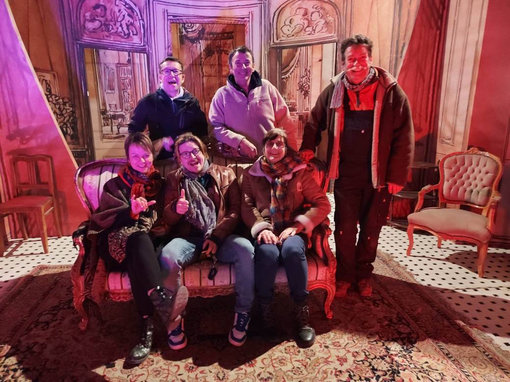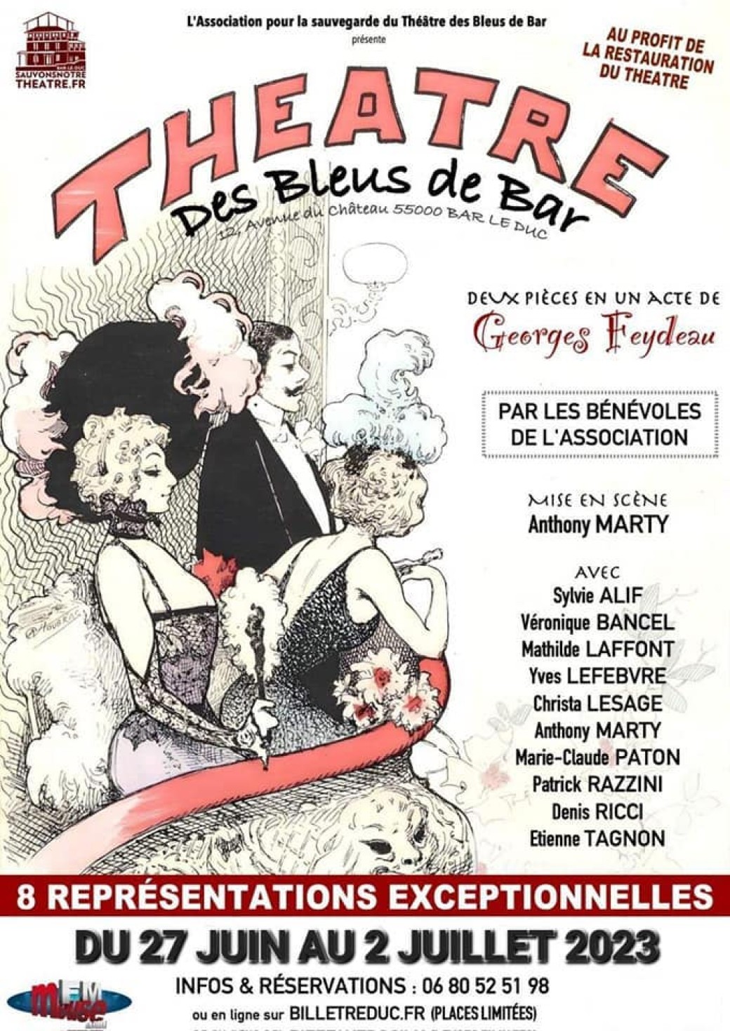 Dans un véritable décor de théâtre et en costumes d'époque, les 10 interprétes de cette troupe éphémère vous invitent pour la première fois depuis plus de 60 ans à faire revivre la scène du Théâtre des Bleus de Bar.