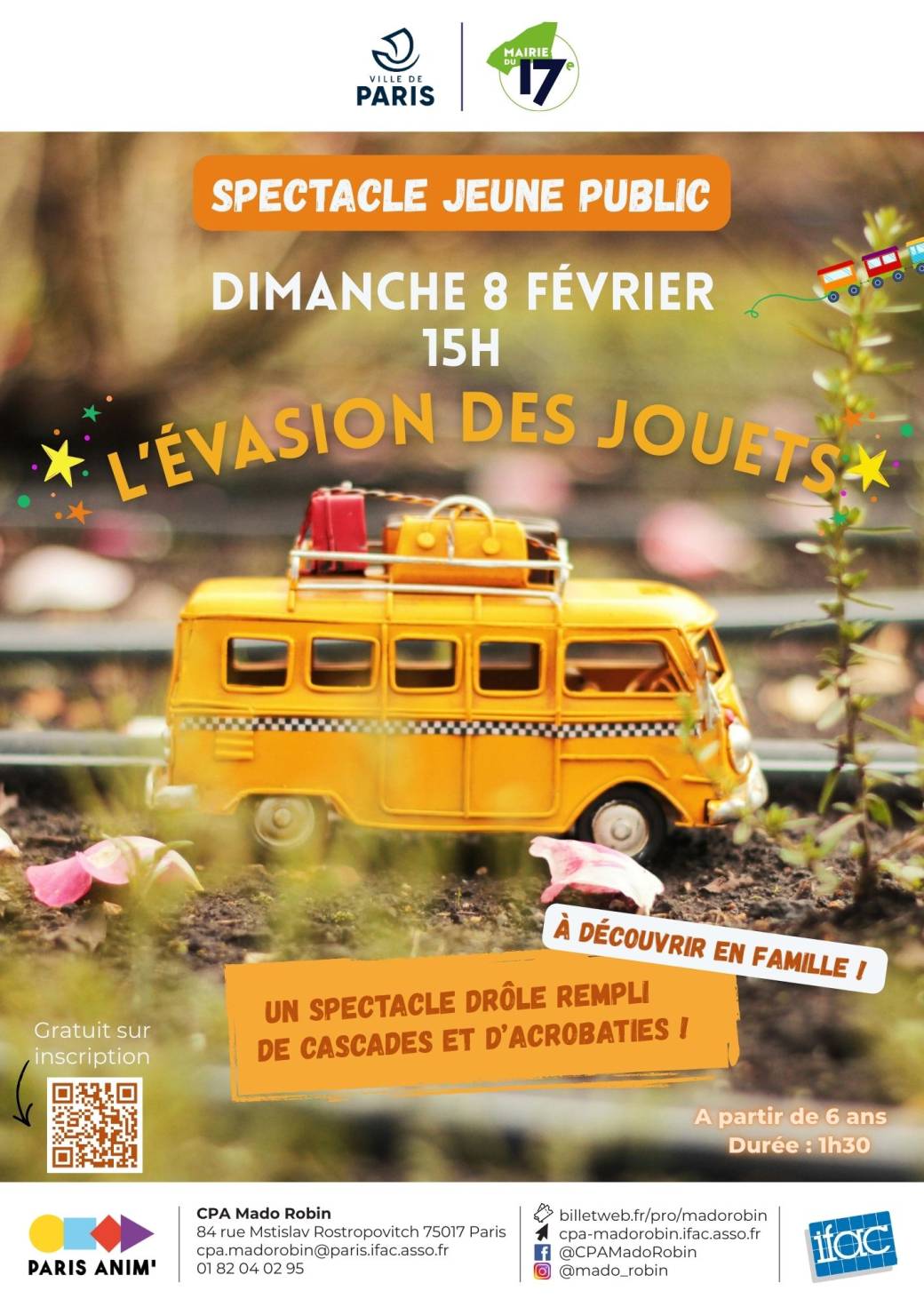 L’Evasion des Jouets est un spectacle d’une heure et demie pour toute la famille. On y retrouve un joyeux cocktail de comédie, de combat scénique et d’acrobaties. Avec cinq cascadeurs sur scène, l’énergie qui s’en dégage