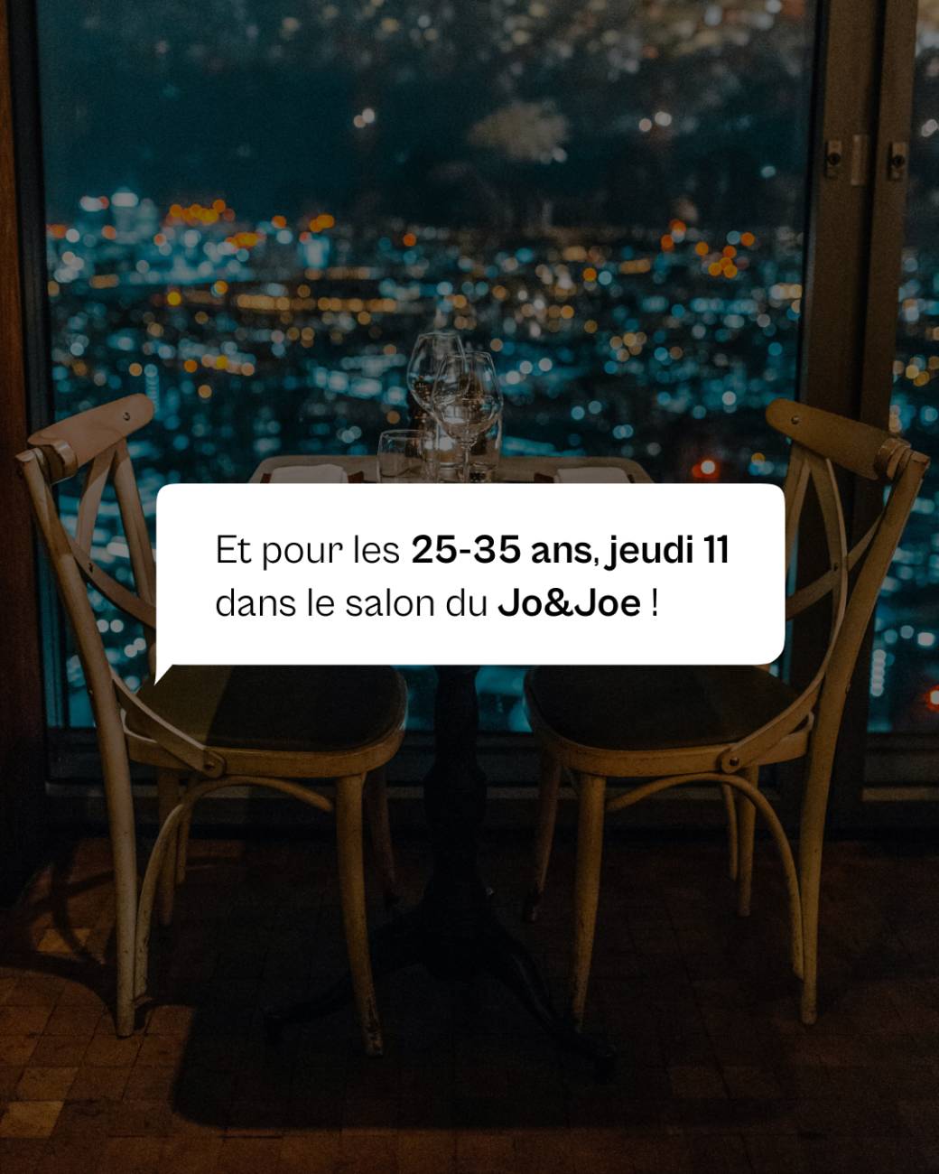 Rejoins-nous pour une soirée speed dating 25-35 ans, le jeudi 11 décembre, dans le cadre moderne et convivial de l'hôtel Jo&Joe.