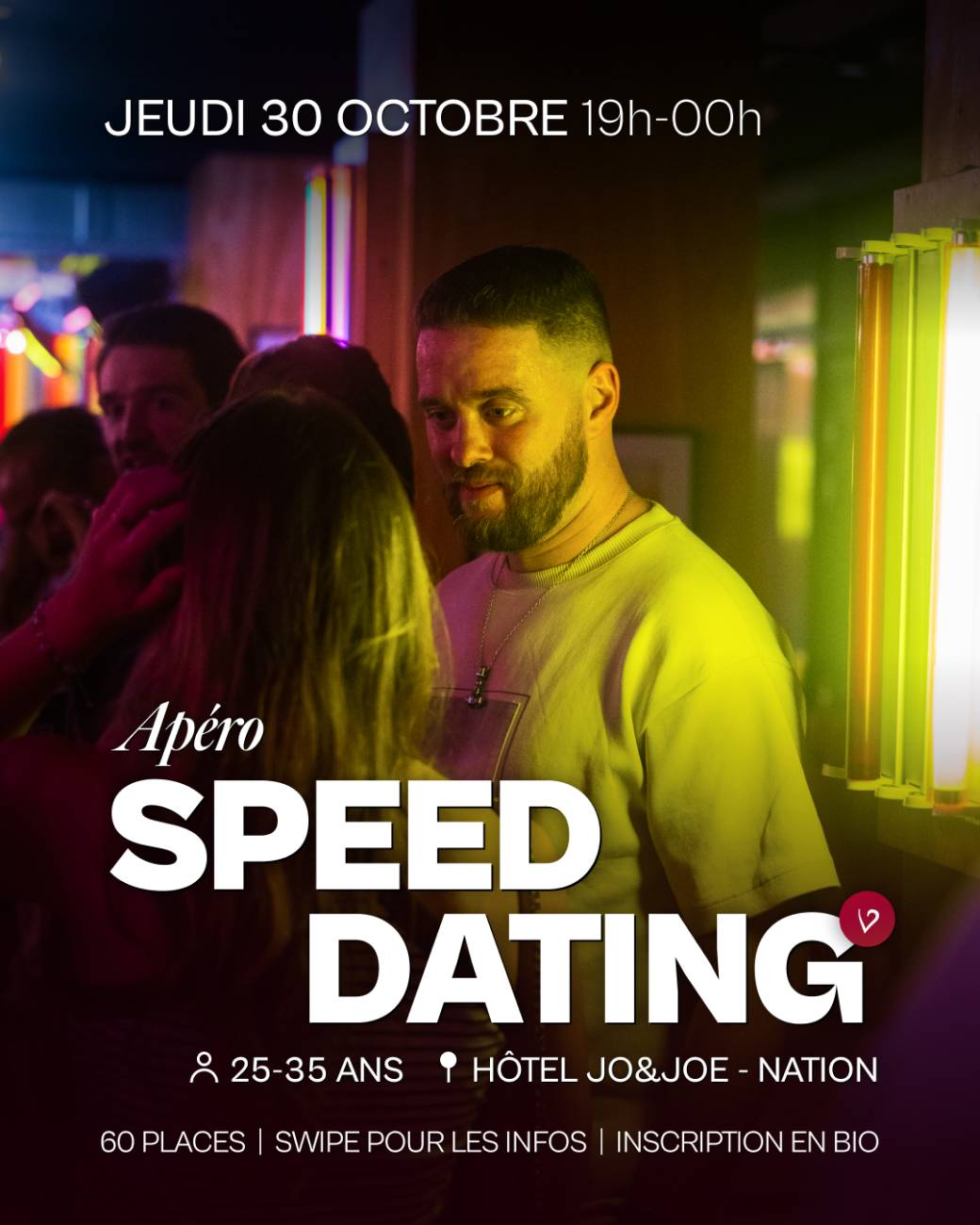 2025-10-30 19:00:002025-10-30 23:55:00Europe/ParisAPÉRO SPEED DATING 25-35 ANSReservations on : https://www.billetweb.fr/speed-dating-rdv