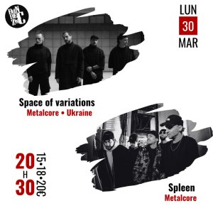 • Space Of Variations est un groupe de metal ukrainien qui a remporté à deux reprises le titre de meilleur groupe de metal d'Ukraine. Il fait partie des rares représentants de la scène heavy metal ukrainienne à avoir régulièrement participé à des tournées en Europe, aux États-Unis et en Asie, et à bénéficier d'un excellent accueil en dehors de l'Ukraine. Le groupe a partagé la scène avec des groupes de renommée mondiale, notamment P.O.D, Architects, Jinjer, Devildriver, Electric Callboy, Emmure, Bad Omens, Three Days Grace, Malevolence, Vended et bien d'autres. Depuis 2019, Space Of Variations est signé chez le grand label autrichien Napalm Records.