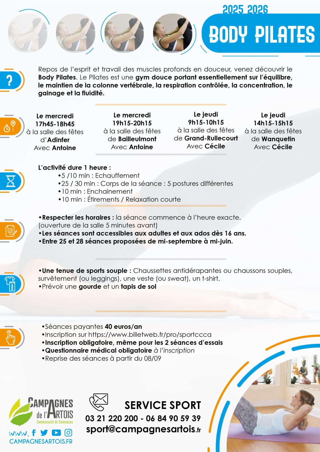 Si la séance que vous souhaitiez est complète, veuillez envoyer un mail sur : listeattentesport@campagnesartois.fr pour être recontacter en cas de désistement !