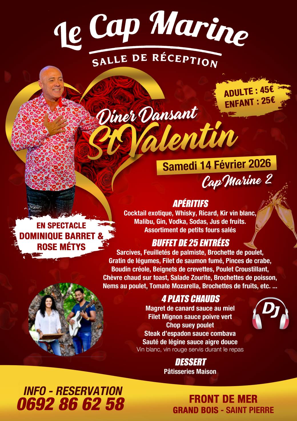 Venez fêtez la St-Valentin au Cap Marine 2 le samedi 14 février 2026.