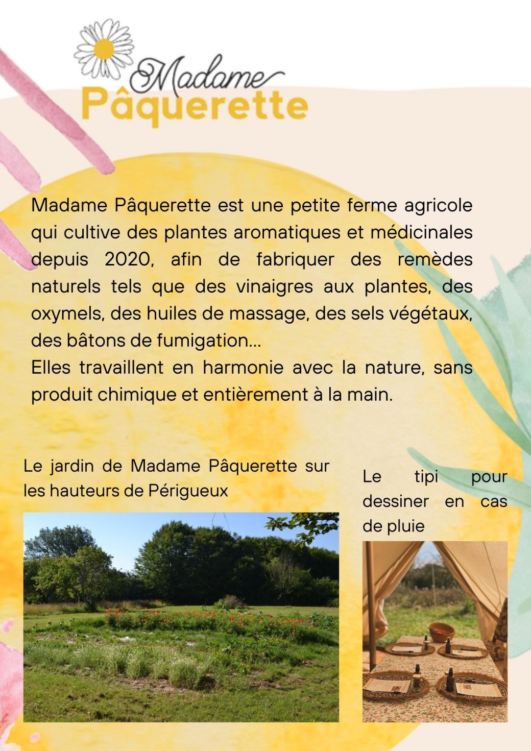 La partie dessin botanique se fera à l'intérieur du tipi du jardin de Madame Pâquerette (voir photo ci-dessous).