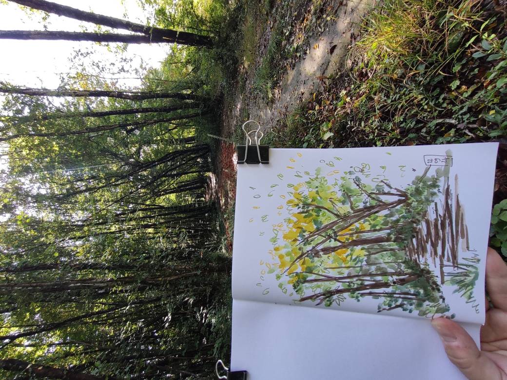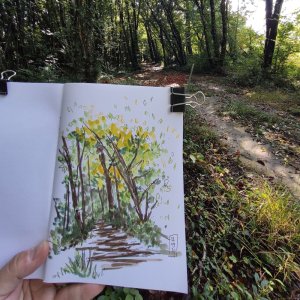 Je vous accompagne dans la création de votre carnet à travers des démonstrations et invitations variées : dessin, peinture à l'aquarelle, écriture...