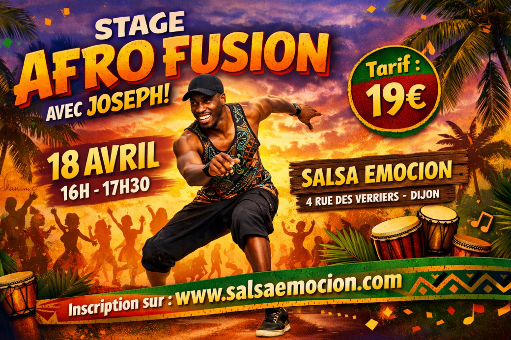 Salsa Emoción vous propose un stage d’Afro Fusion, un style explosif qui mélange mouvements africains et danse urbaine moderne.