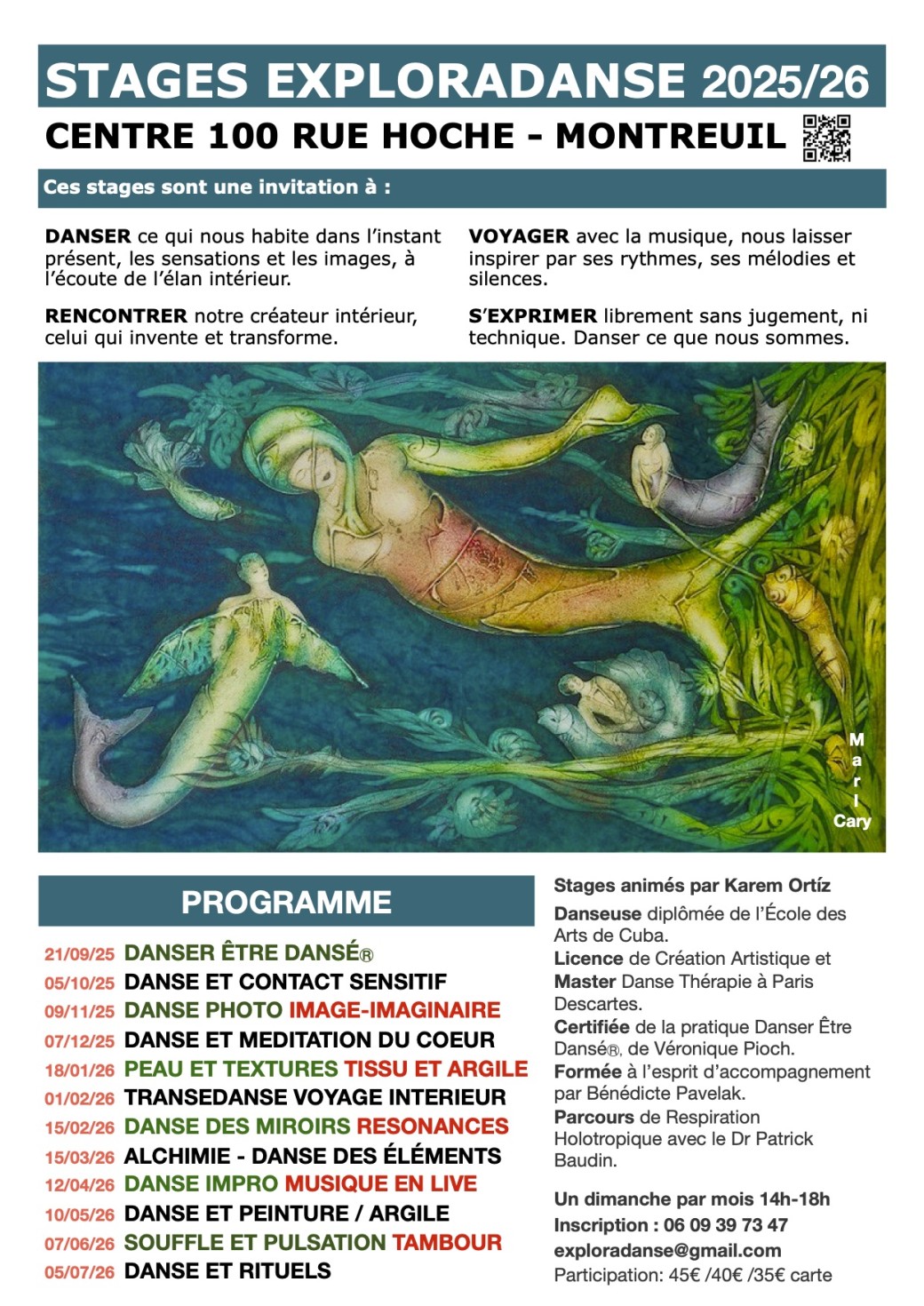 Assistante en Respiration Holotropique et co-animatrice de stages de Transedanse & Grof Breathwork avec le Dr Patrick Baudin