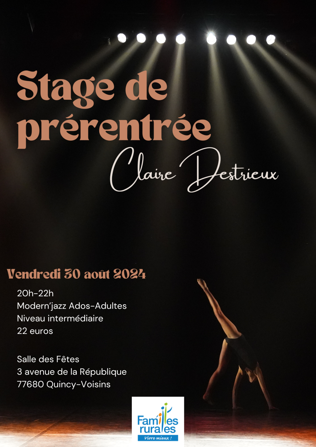 La section danse de l'association Familles Rurales organise son premier stage de prérentrée, assuré par Claire Destrieux, professeur diplômée d'état.