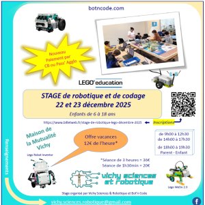Vichy Sciences & Robotique propose des ateliers d’apprentissage de la Robotique et du Codage, de façon ludique et créative, en utilisant des Lego® Technics.