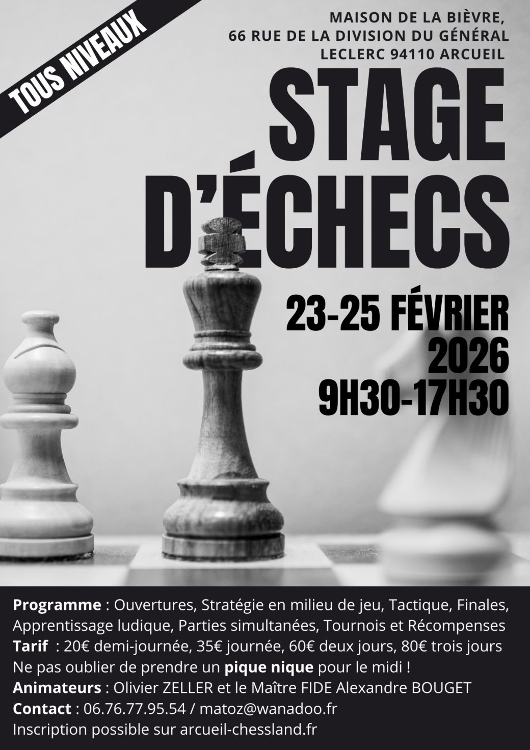 Reservations on : https://www.billetweb.fr/stage-dechecs1 --