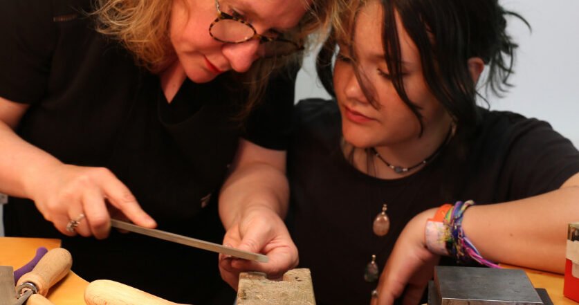 Apprendre à découper, à faire des textures sur métal au marteau, à limer, à mettre en forme le métal, souder.