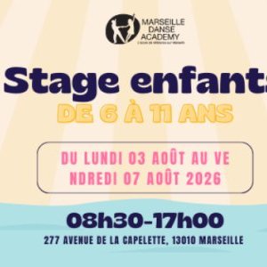 Marseille Danse Academy propose un stage de danse pour les enfants (entre 6 & 11 ans) pendant les vacances d'été ! ☀️ Du Lundi 03 Août au Vendredi 07 Août 2026, vos enfants pourront s'éclater et découvrir la joie de la danse.