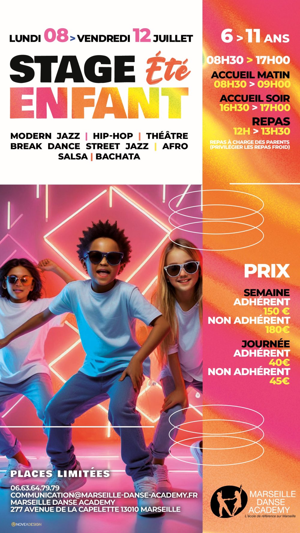 Du lundi 08 juillet au vendredi 12 juillet 2024, Marseille Danse Academy est ravie de proposer un stage de danse pour les enfants (entre 6 & 11 ans) pendant les vacances d’été !