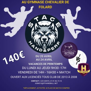 Stages de perfectionnement handball réservé aux garcons et filles licenciés nés entre 2008 et 2013.