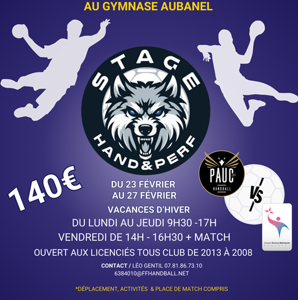 Stages de perfectionnement handball réservé aux garcons et filles nés entre 2008 et 2013, licenciés ou non.