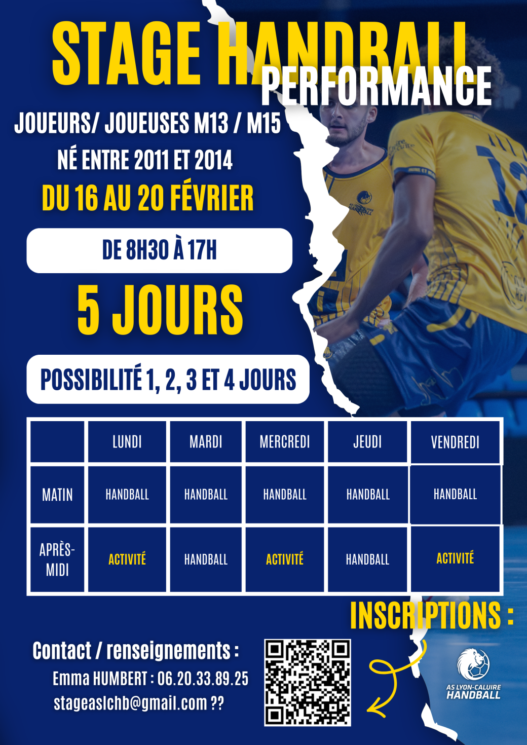 Reservations on : https://www.billetweb.fr/stage-handball-performance-2011-a-2015-27-au-31-octobre --