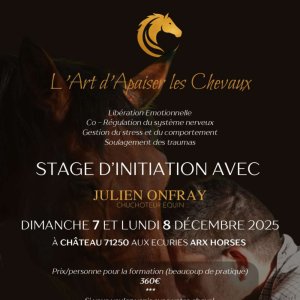 Stage de deux jours d'initiation " L'Art d'Apaiser les chevaux "