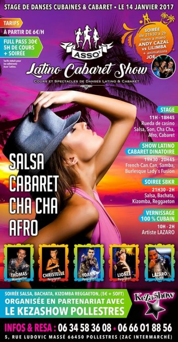 organisée par Asso' Latino Cabaret Show Pollestres / Perpignan À la salle Kézashow DE Pollestres Pollestres et ses partenaires Philocalie Officiel Latin' Tropic Show by Christelle danse Latine & Cabaret... Salsa Caminala CUBAILANDO Narbonne Kézashow Stu Dio Dance et la Boutique Janson confetti 69 av maréchal Leclerc 66000 Perpignan