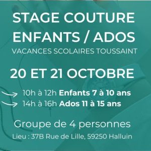 Des stages de couture sont proposés pour les petits et les grands enfants (7 à 15 ans) lors des vacances scolaires pour apprendre à utiliser la machine à coudre sur des projets choisis et définis – tote bag, pochon, serviette de table, lingettes démaquillantes… Des groupes de 4 personnes maximum pour apprendre de façon ludique !