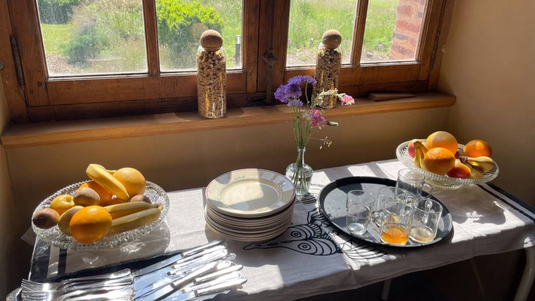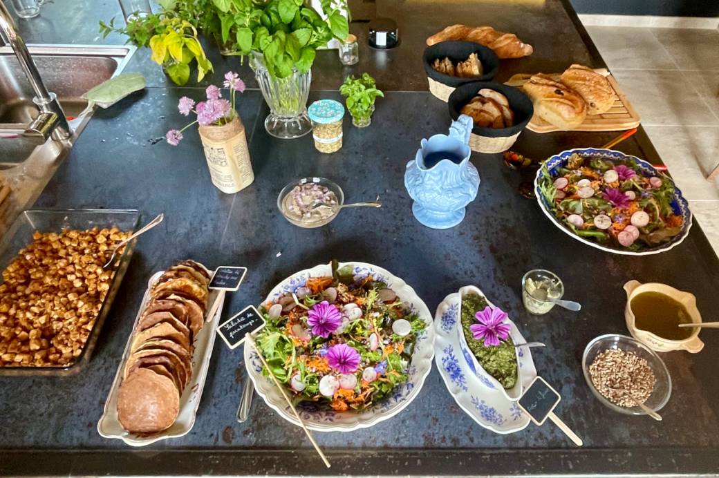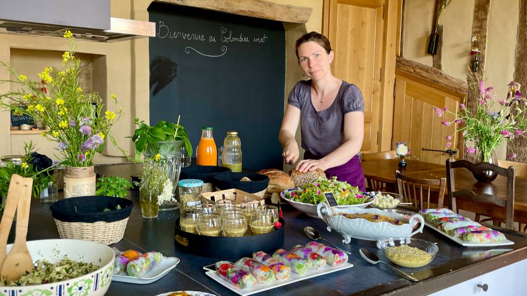 - Repas végétariens préparés sur place par une cuisinière, avec des produits bio, locaux et de saison